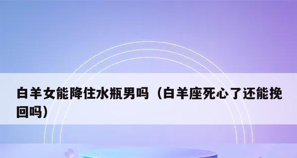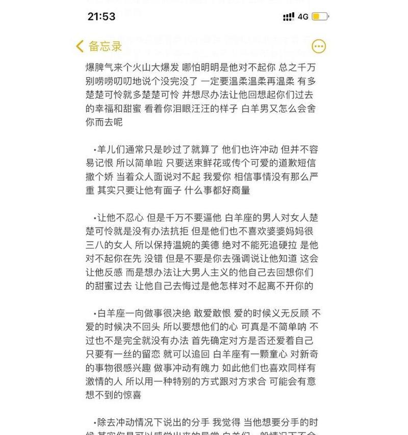 白羊男性格热情、冲动、自信,但也很容易受伤、胡思乱想,有时候会让人感到不太稳定。如果你失去了你的白羊男人,你需要采取一些措施来挽回他的心。本文将提供一些有效的方法,帮助你重新吸引他的注意力,让他重新爱上你。