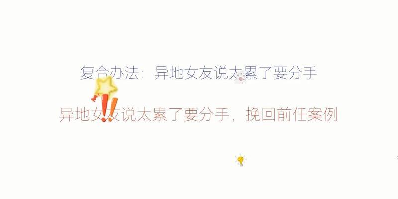 恋爱中的分分合合是常见的,有时候分手是必要的,但有时候也会想要挽回对方,复合成为了一个可能。然而,分手后再次复合需要多长时间是一个普遍的问题。本文将从分手到复合所需的时间来探讨这个问题。